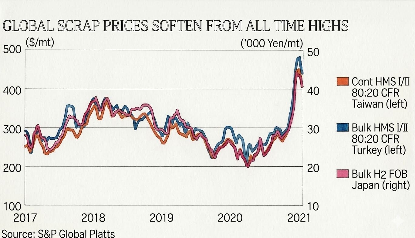 Failure mode. Scrap was accumulated during a stable pricing period, but market prices declined before export. Material held without a defined release strategy became exposed to downward price adjustments.